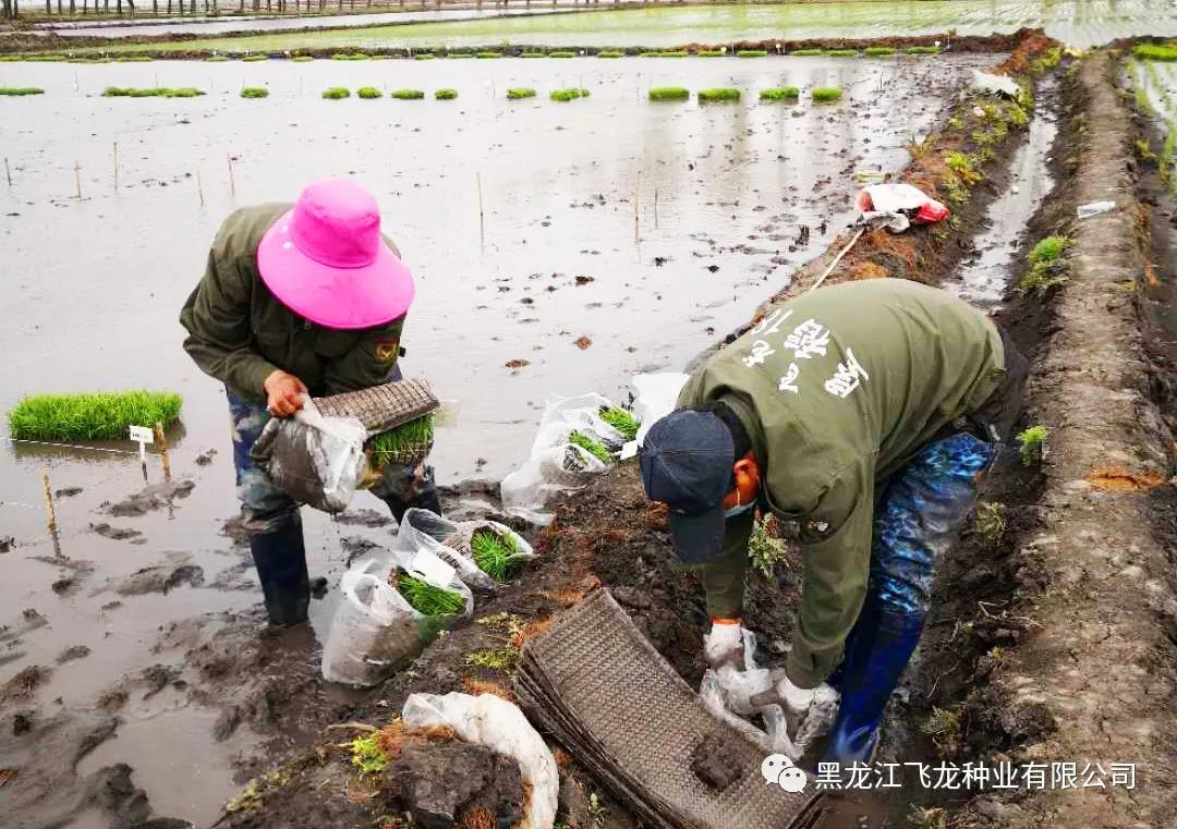 飛龍種業(yè)水稻試驗(yàn)站面積10畝,15人的隊(duì)伍,在經(jīng)過(guò)前期的苗床選地、整地作廂、種子處理以及肥料管理等育秧工作后,現(xiàn)階段主要工作為秧苗移栽。