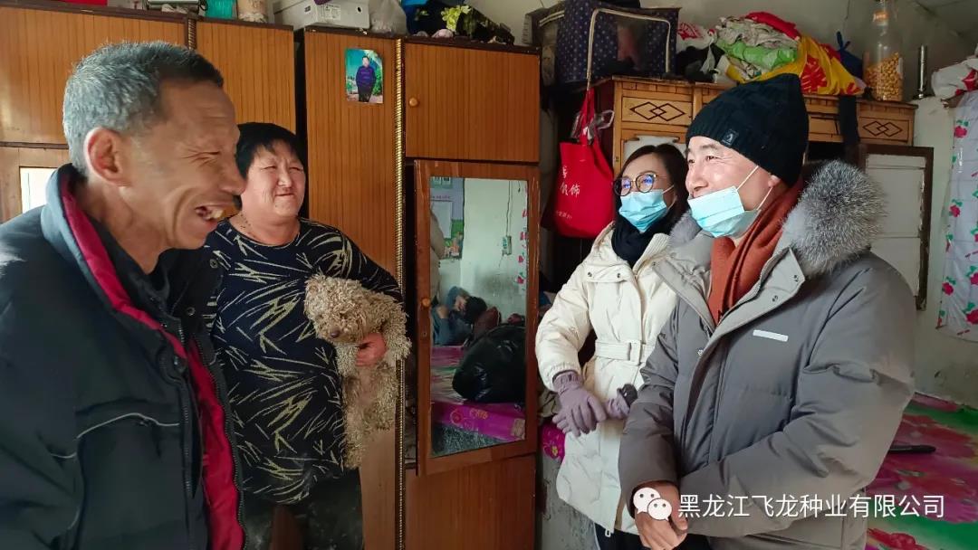 2022年1月25日,飛龍種業(yè)林志達總經(jīng)理以及員工逐一深入到福利鎮(zhèn)、集賢鎮(zhèn)、升昌鎮(zhèn)、永安鄉(xiāng)、興安鄉(xiāng)、腰屯鄉(xiāng)馬清祥、王喜軍、呂海濱等11戶群眾家中,把年貨送到貧困群眾手中,并耐心地詢問他們春節(jié)年貨置辦得怎樣、生活上還有哪些困難等,同時提前祝福他們節(jié)日快樂,讓他們從心里感受到全社會對困難群眾的關(guān)愛之情。除了米面油、水果、醬油醋、深海刀魚和瓜子花生糖果等年貨以外,還根據(jù)不同需求送去了衣服、鞋子、被褥等。
