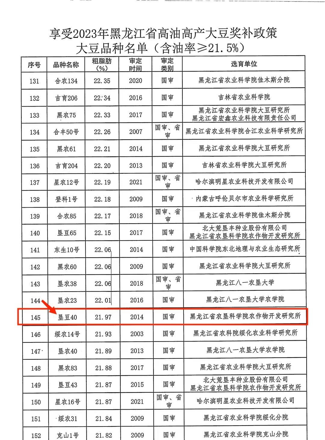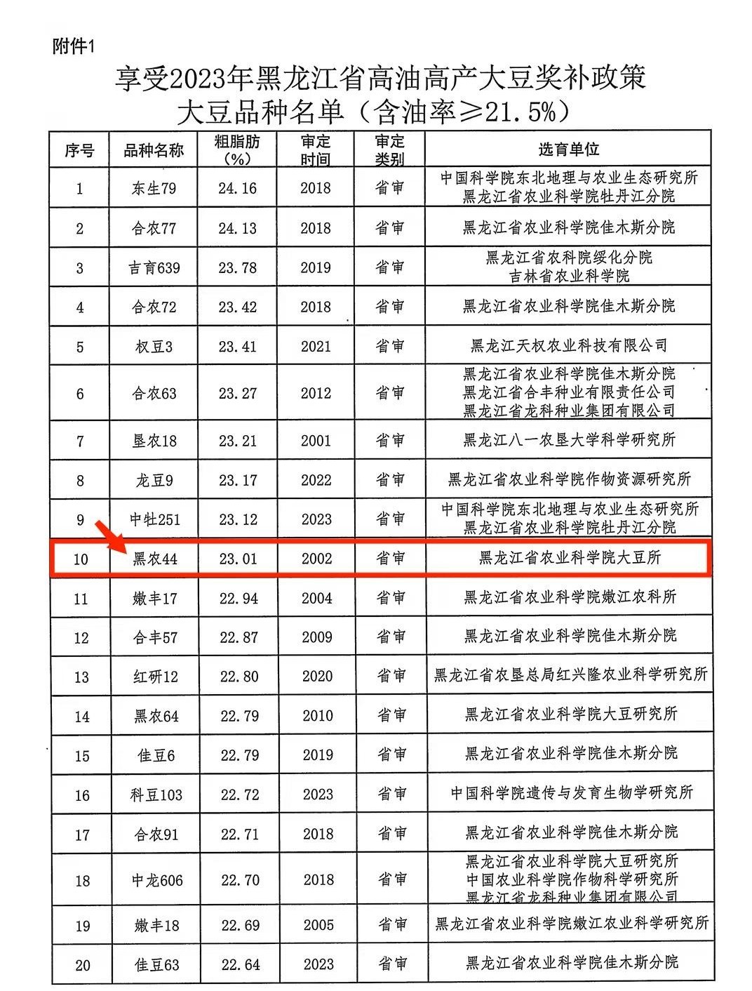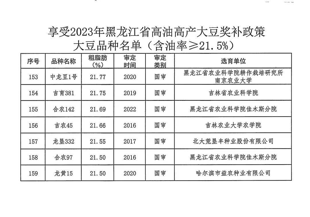 附件:1.享受2023年黑龍江省高油高產(chǎn)大豆獎(jiǎng)補(bǔ)政策大豆品種名單(含油率≥21.5%)